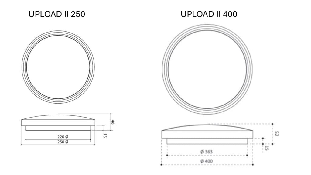 Matalarakenteinen (h 48mm/52mm), iskunkestävä (IK10), seinä- tai kattopintaan asennettava yleisvalaisin sisätiloihin. Kaksi eri runkokoa Ø250mm ja Ø400mm. Käyttökohteita ovat esimerkiksi matalat aulat, käytävät, tuulikaapit, porrashuoneet, WC:t ja märkätilat. Kaikissa versioissa värilämpötilan säätö 3000K ja 4000K liukukytkimellä.