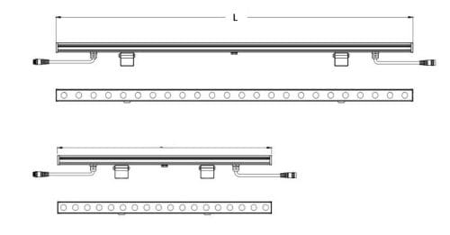 Kallistettavat kannakkeet pinta-asennukseen. Sisältää projektikohtaisesti mitoitettavat syöttö- ja välikaapelit IP66-pikaliittimin. HUOMIO: valaisinta ei saa avata (riski tiivistepintojen vaurioitumiselle ja siitä seuraavalle takuun raukeamiselle).